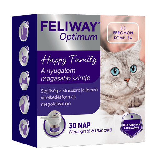 Az új macskaferomon komplex, a FELIWAY Optimum által közvetített üzenet a macskák felé nagyobb nyugalmat közvetít. Ez a sokrétű üzenet segít a macskáknak, hogy kényelmesebben és nagyobb biztonságban érezzék magukat az otthonukban, és biztosítja az együtt élő macskák között is a harmóniát.